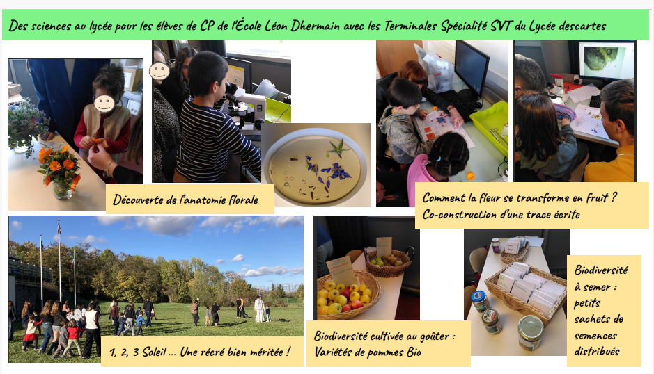 Lundi 3 Novembre les élèves de Terminales Spécialités SVT4 ont accueilli une classe de CP de l'école Léon Dhermain, pour des travaux pratiques de SVT partagés.